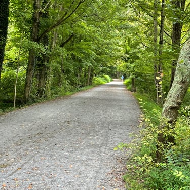 The trail suffered significant damage from Hurricane Helene and the loss of 30 trestles and other damage from the storm had closed the second half of the route past Damascus. The route loses some of its scenic charm as it nears this midpoint alongside busy Jeb Stuart Highway. We spun around at the Daisy Bell store, a convenient stop for snacks or ice cream on a hot day, and headed back towards Abingdon.