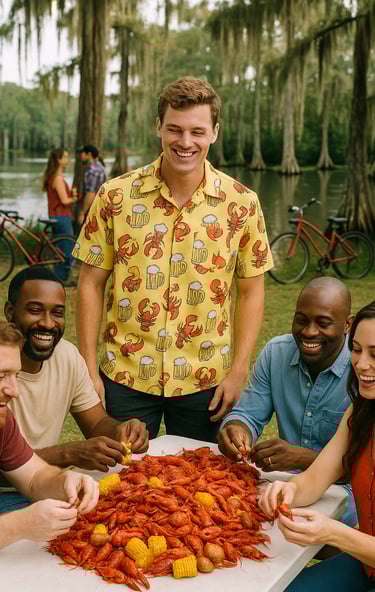Make your cooldown count. A pile of mudbugs and this crawfish shirt!